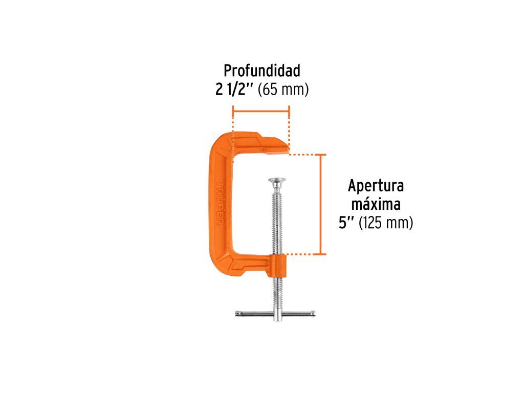 TRUPER – Truhlářská svěrka typu C PNT-5: litinové tělo, otočná patka, maximální rozevření 125 mm