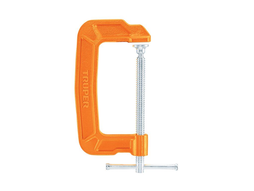 TRUPER – Truhlářská svěrka typu C PNT-5: robustní C svěrka z tvárné litiny s otočnou patkou a šroubem s rukojetí pro pevné a přesné upnutí materiálu.