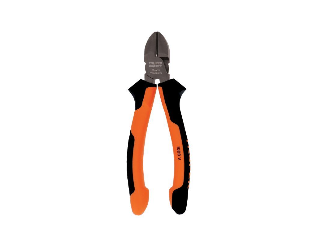 Elektrikářské štípací kleště TRUPER Expert T202-6X: profesionální boční štípací kleště z chrom-vanadiové oceli s izolací do 1000 V a ergonomickou rukojetí Comfort Grip pro přesné stříhání vodičů.