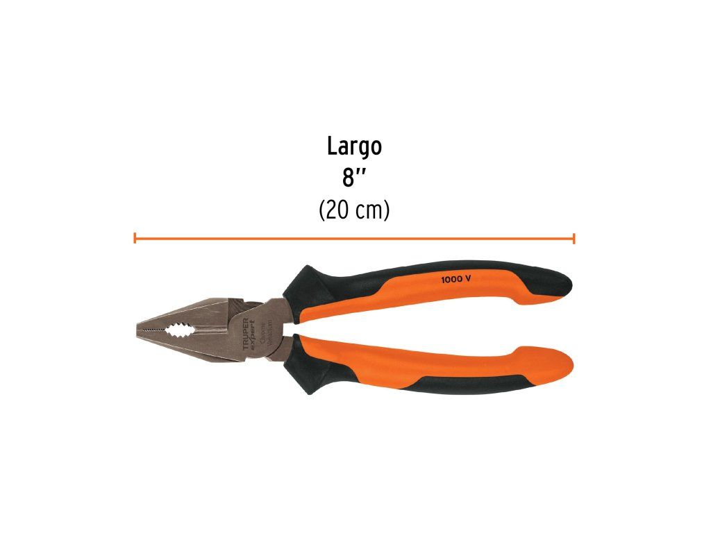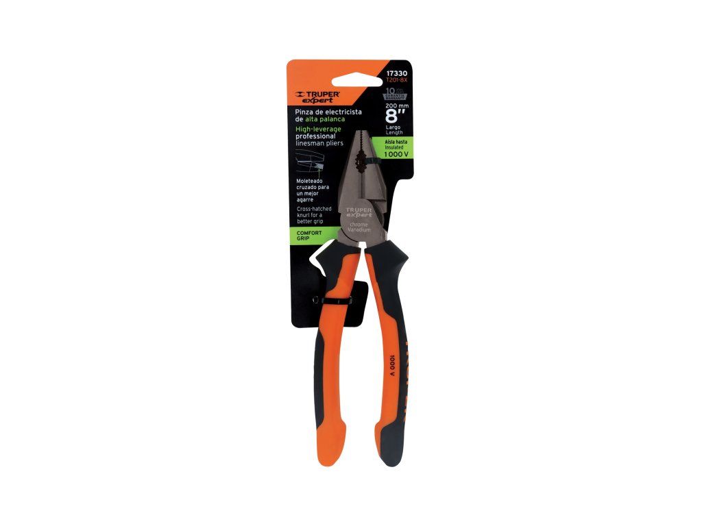 TRUPER Expert – Kombinované elektrikářské kleště T201-8X: 1000 V, CrV ocel, ergonomická rukojeť Comfort Grip, 20 cm
