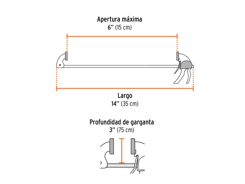 TRUPER Expert – Rychloupínací truhlářská svěrka PAR-26: 35 cm, maximální rozevření 15 cm, hloubka 7,5 cm, 165 kg, reverzní čelisti