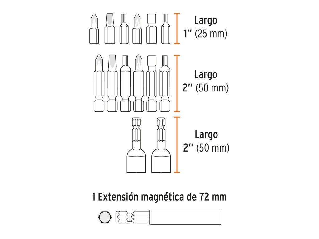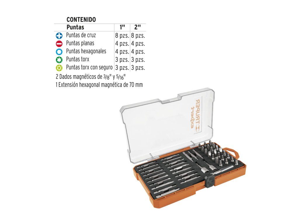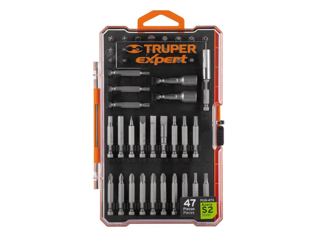 Sada bitů TRUPER Expert PUN-47X obsahuje kombinaci krátkých i delších bitů, což umožňuje flexibilní použití při různých typech šroubů a pracovních situacích. Je vhodná pro dílenské i montážní práce.