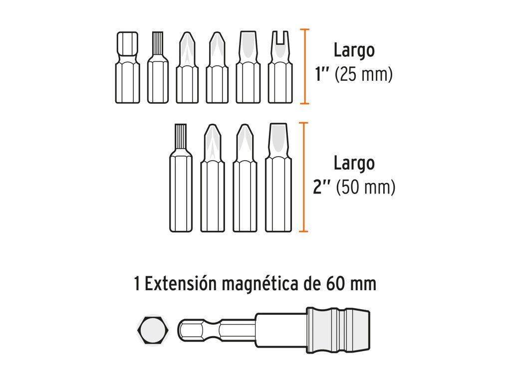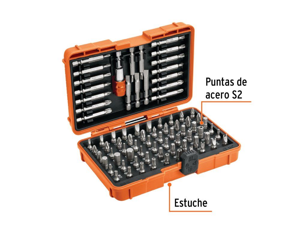 Bity jsou vyrobeny z oceli S2, která zajišťuje vyšší odolnost proti opotřebení, a přesné opracování umožňuje spolehlivé uchycení. Souprava obsahuje také magnetický držák pro pohodlnou práci a plastové pouzdro pro přehledné uložení.