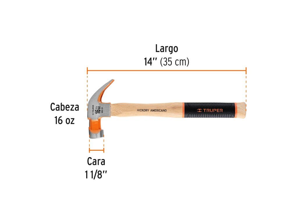 TRUPER - Tesařské kladivo MO-16: Zahnutý dráp, 16 oz, dřevěná rukojeť s protiskluzovým úchopem