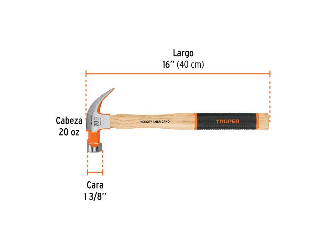 TRUPER - Tesařské kladivo MO-20: Zahnutý dráp, 20 oz, dřevěná rukojeť s protiskluzovým úchopem